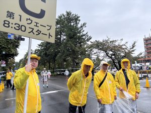 金沢ライオンズクラブも早朝6時過ぎより、マラソン走者のスタート会場誘導等のボランティアを行いました。